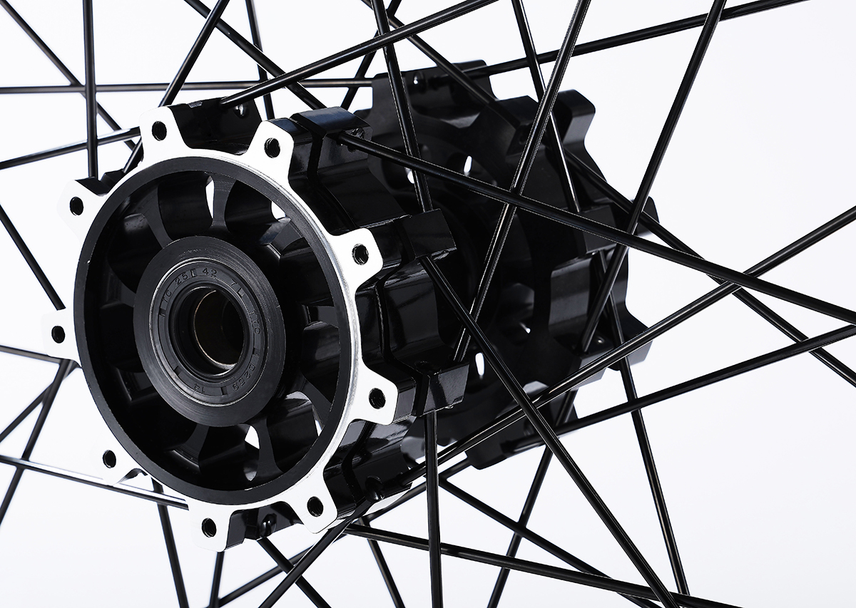 产品名称:竞技轮辋总成 车圈:材质:7116AL T6,前轮:21*1.6"http://后轮:18*2.15",高强度铝制轮圈 花鼓:材质:6061AL T6,前鼓芯:M20*9G*36H//后鼓芯:M20*9G*36H。锻造花鼓 辐条:材质:304#不锈钢,更高韧性与强度 适配车型:探骊TL8000